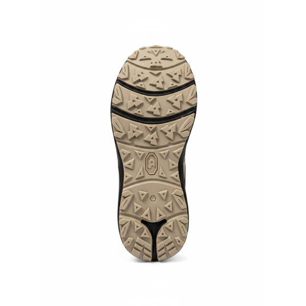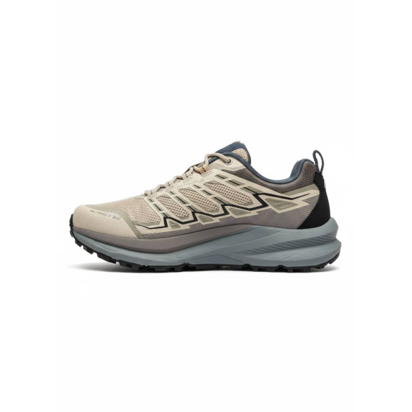 •Природная палитра: Песочные и бежевые оттенки "Arid Stone" в сочетании с темно-синими акцентами на языке и подкладке создают современный образ в стиле Gorpcore.